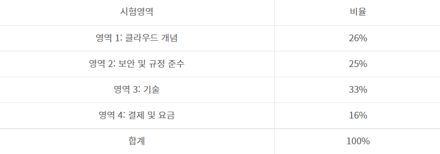 위 사진은 시험에서 출제되는 영역 및 비율이다.
