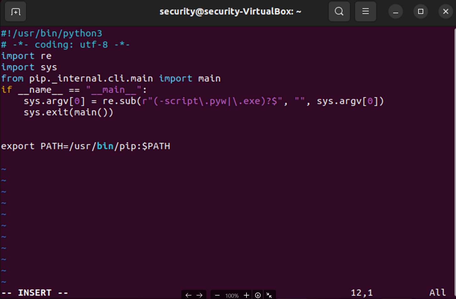 경로를 확인했으면 sudo vi /usr/bin/pip 로 들어가서 영구적으로 PATH를 추가할 것이다.